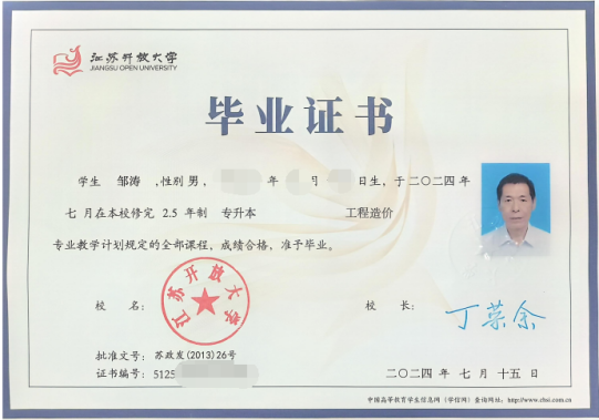 面对建筑工程计价模式的改革,邹涛敏锐地意识到自身在BIM计算与合同管理方面的不足。2022年,他毅然选择重返校园,加入江苏开放大学,利用灵活的学习方式,实现了工作与学习的完美平衡。尽管年龄与学习困难并存,但他从不轻言放弃,积极发扬学院“建德精工 匠心筑梦”的工匠精神,精益求精,在老师和学务导师的不断指导帮助下,完成江苏开大本科专业学习并顺利取得学位,职业生涯也因此迎来了新的飞跃。